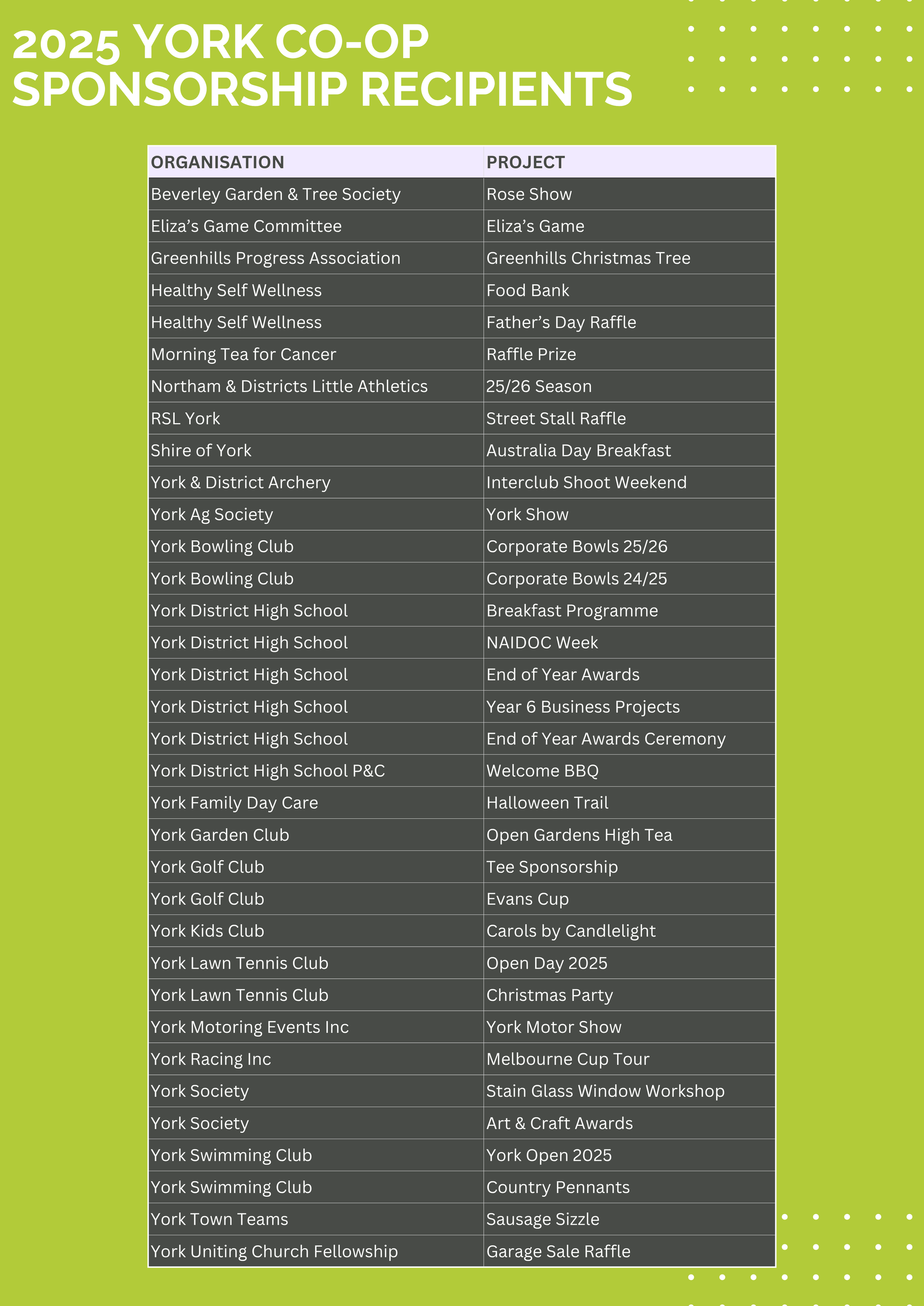 YORK CO-OP SPONSORSHIP