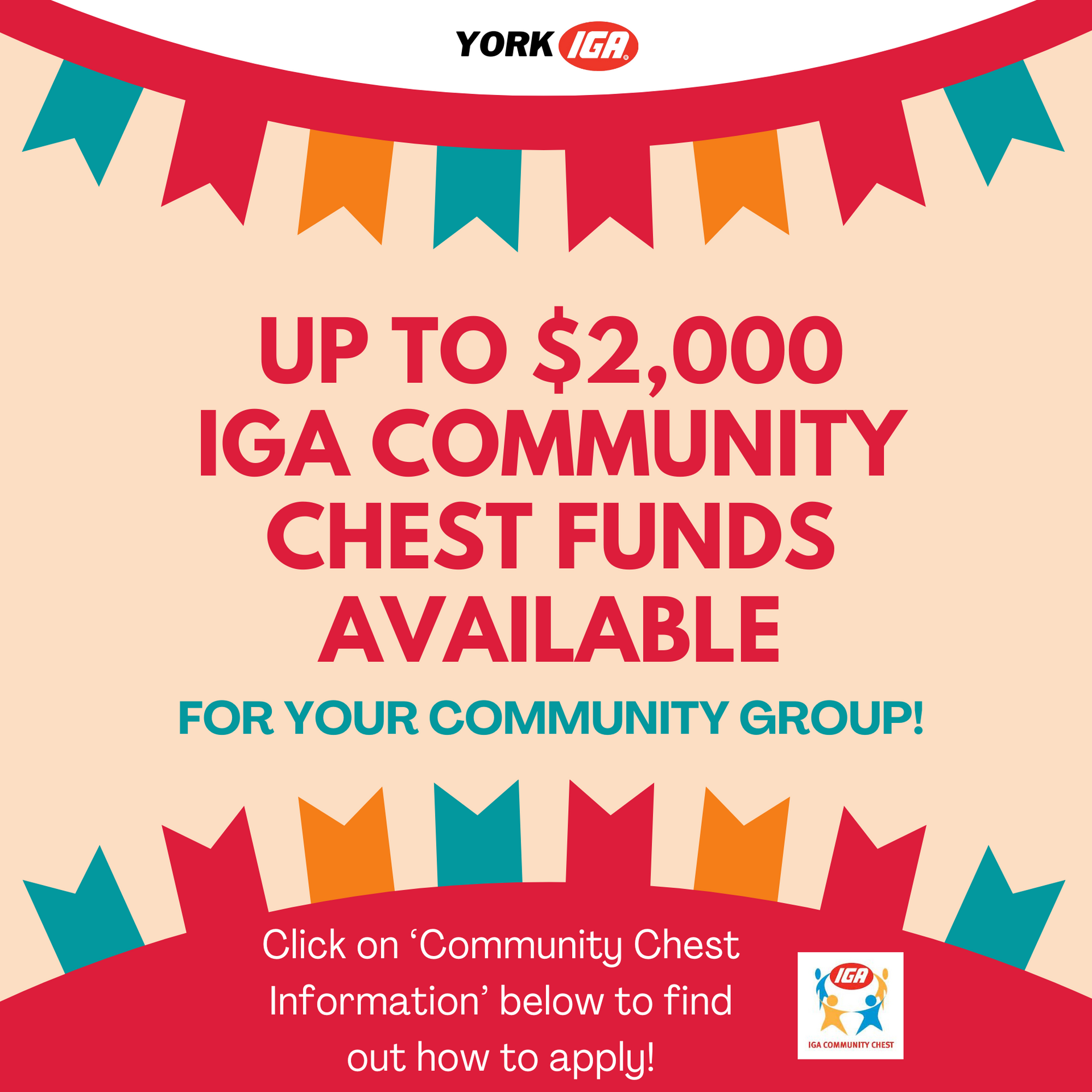 Applications are open for York IGA Community Chest Funding. With up to $2,000 available for projects or equipment that benefit the local community, make sure that your community group submits their application by 30th October 2025 to be eligible. Find out more below!